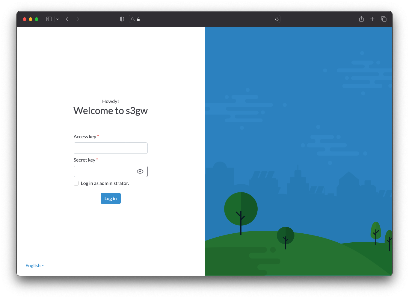要访问 s3gw Web UI,可以使用在 chart 中配置的 S3 UI FQDN 访问 S3 Web UI(本例为:s3gw-ui.local),并使用 chart 中设置的 Access key 和 Secret key 作为凭证登录 S3 Web UI(本例为:test/test):