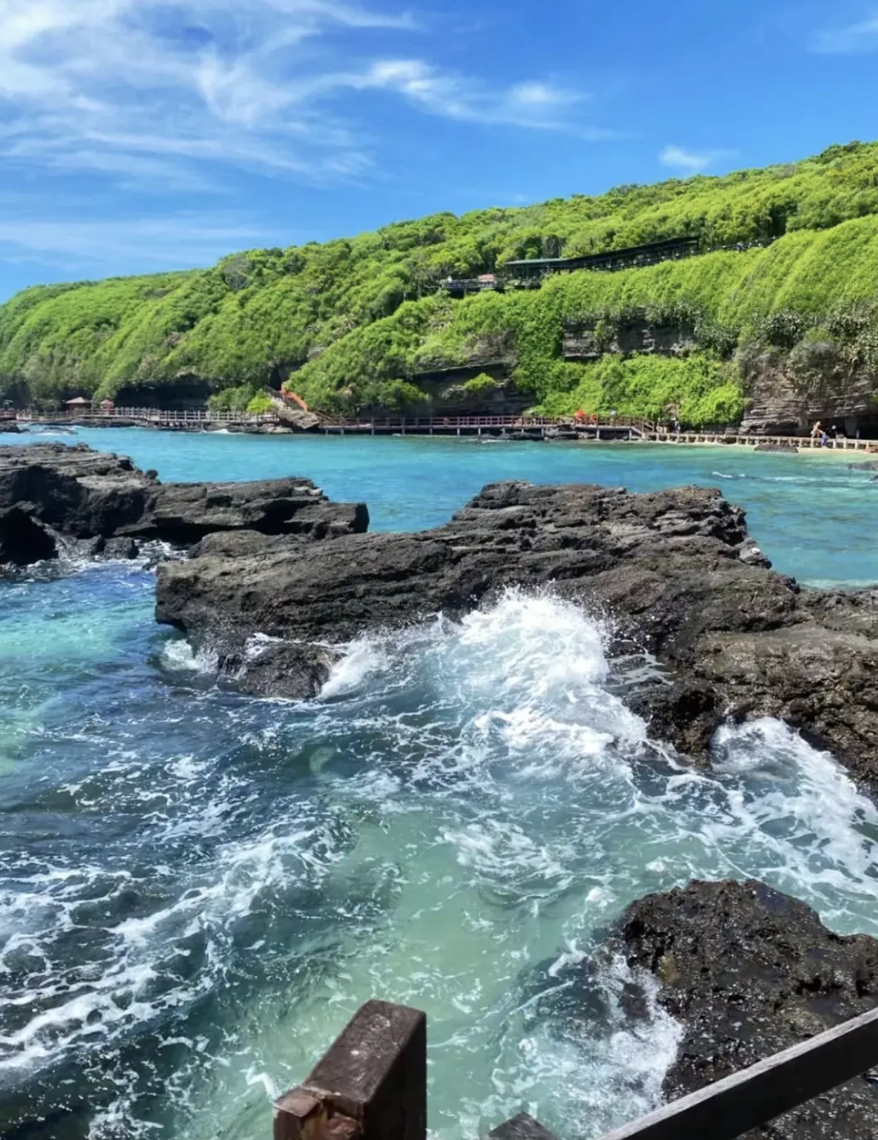 - 🔥蓝桥:这边有几家咖啡厅都很好看很出片,海也很蓝,网上很火的那个秋千也是在这边,包出片