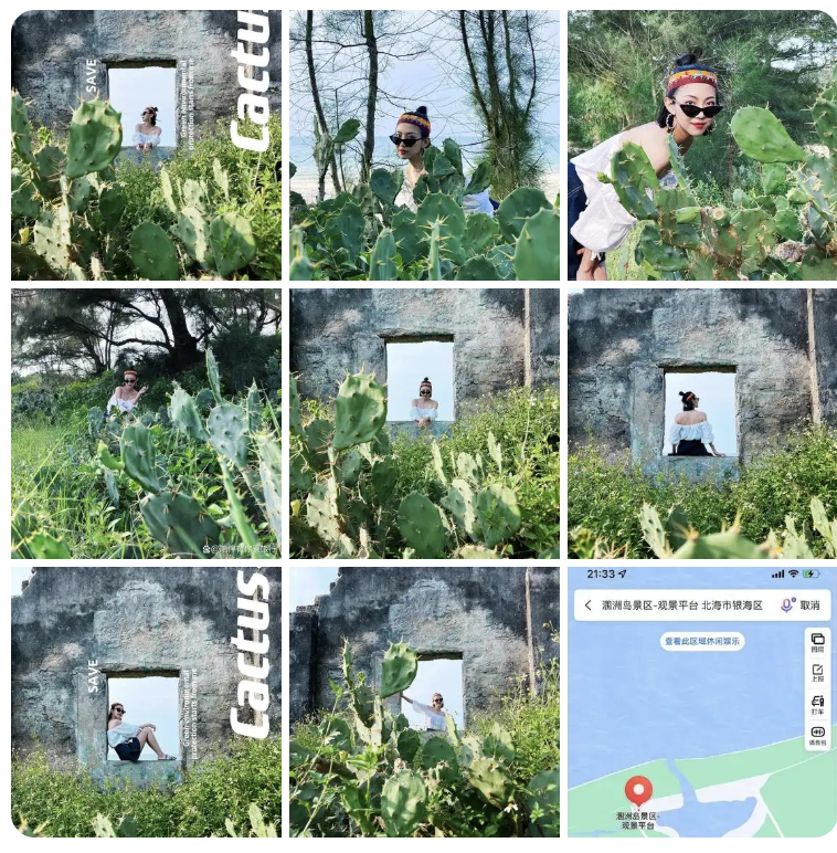 路线:天主教堂 → 贝壳沙滩 → 仙人掌相框